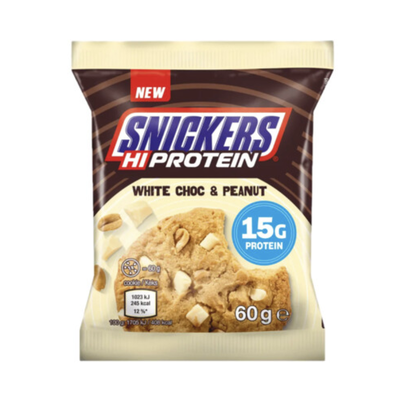 Snickers HiProtein Cookie est un délicieux biscuit protéiné avec des morceaux de chocolat au lait et des cacahuètes. Snickers HiProtein Cookie est le compagnon idéal pour tes voyages, où que tu sois. Que tu aies besoin d'une collation rapide après l'entraînement, ou que tu cherches simplement une alternative plus saine aux sucreries, Snickers HiProtein Cookie est le choix idéal. Chaque biscuit contient jusqu'à 15 g de protéines, qui contribuent à la croissance et au maintien de la masse musculaire.