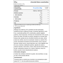 Biscuit protéiné avec des morceaux de chocolat et des cacahuètes.
