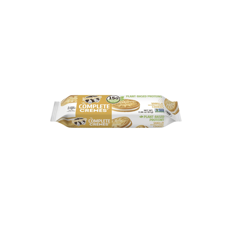 Les biscuits protéinés sandwich complets de Lenny et Larry combinent des biscuits croquants à la vanille avec une garniture crémeuse sucrée pour créer une friandise super savoureuse.